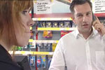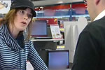 TV'et har en anden pris end annonceret og kunden er vred, da hun "endelig" bliver betjent.